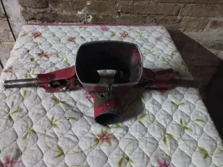 Manillar de Vespa Primavera en buen estado conserva su pintura roja original presenta una rotura que apenas se ve poniendo el cerquillo por lo demás todo perfecto no va incluido el cerquillo en el precio