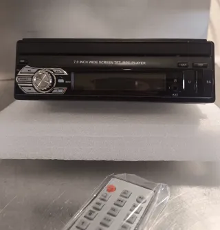 Radio para coche con pantalla táctil de 7 pulgadas, compatible con GPS y reproducción de Apple CAR play y Android auto inalámbrico. Incluye mando a distancia y todos los cables necesarios para su instalación. - Sin uso (literal, se compró y no se ha usado) - Pantalla TFT LCD de 7 pulgadas. táctil abatible. - Conexión USB - Cámara marcha atrás AHD - Receptor GPS integrado. - Reproductor de MP3. - Mando a distancia incluido. - Cableado de instalación.