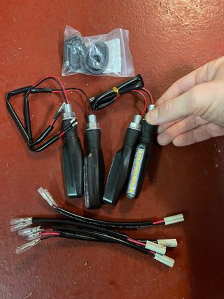 Kit completo de cuatro intermitentes LED. Logicamente los intermitentes son universales para cualquier moto. En el pack añado los cables de conexión de Yamaha para evitar empalmes raros. - Incluye 4 intermitentes. - Cableado para Yamaha con conectores. - Incluye soportes de goma.