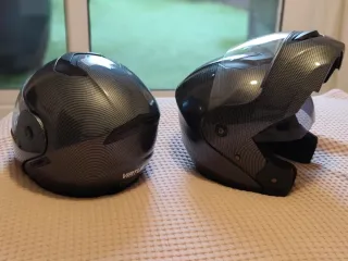Dos cascos de moto modulares de AliExpress - Talla L. - Talla XL. Los dos 40 euros. Los usé un tiempo pero son cascos quita multas chinos, eso sí, son super cómodos y es como si no llevaras nada, están impecables