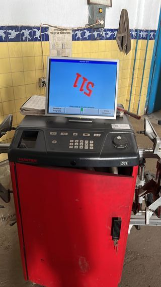 Máquina alineadora de neumáticos Hunter 511, en buen estado. - Marca: Hunter - Modelo: 511 - Incluye pantalla y teclado.