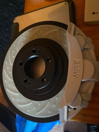 Disco de freno con pinza, diseñado con luces LED. Se hacen de mas colores y diseños - Diseño deportivo y llamativo. - Acabado en color gris y negro.