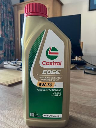 NUEVO sin abrir ACEA C3 VW 504 00/ 507 00; Porsche C30; BMW - Longlife-04; MB-Approval 229.31/ 229.51 Castrol EDGE, con la tecnología patentada Fluid TITANIUM, transforma su estructura física para ser más resistente bajo presión a fin de mantener separado el metal y reduce la fricción para ofrecer un máximo rendimiento del motor cuando más lo necesites. - Grado de viscosidad: 5W-30. - Apto para motores de gasolina, diésel e híbridos. - Envase de 1 litro.