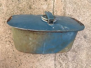 Depósito de Vespa con su pintura azul original. Se encuentra limpio en su interior pero necesita tratamiento, tiene un par de poros.