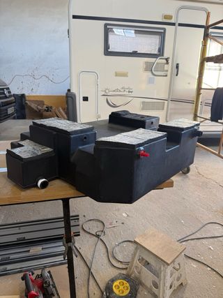 Depósito 95l. Sprinter, MAN TGE y Crafter a partir de 2017 Volumen: 95 litros Material: Polietileno resistente (plástico). Dimensiones (cm): 107 (largo) x 70 (ancho) x 23 (alto) Peso: 11,0 kg Apto para vehículos Sprinter, MAN TGE y Crafter fabricados a partir de 2017 No apto para longitudes de vehículo L1 y L2 (excepción: Sprinter L2) Posición de montaje: En la zona del suelo (bajo el vehículo), detrás del eje trasero.