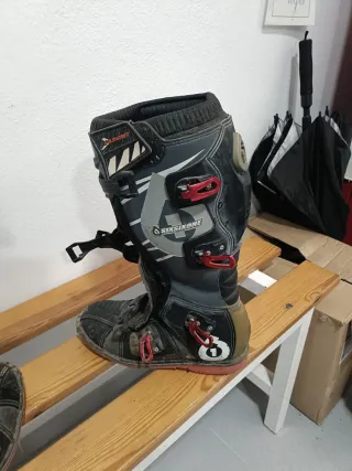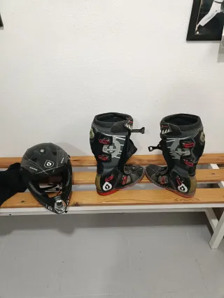 Conjunto de equipamiento para enduro o cross. - Casco negro con detalles plateados y rojos. - Botas de enduro/cross negras con cierres y detalles en rojo y plateado. Marca sixsixone en buen estado poco uso.