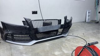 Paragolpes delantero para Audi A5 B8 con diseño tipo RS5. Dale un look deportivo a tu vehículo. - Diseño agresivo y deportivo. - Rejilla frontal tipo panal de abeja. - Preparado para sensores de aparcamiento. está pintado pero nunca se ha llegado a usar. sin estrenar.