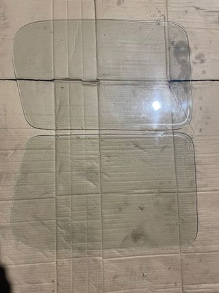 Vendo pareja de cristales fijos para puertas traseras de Renault 4. Usadas, tienen varios desconchones. Preferible entrega en mano por fragilidad pero es posible enviarlas.
