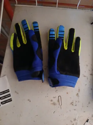 Guantes de enduro Fox en tonos azules y amarillos. - Diseño deportivo. - Materiales resistentes.
