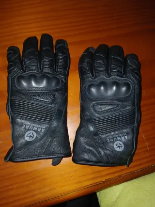 Guantes de moto de la marca Armure en talla S. Fabricados en cuero negro. - Cierre de velcro en la muñeca. - Protecciones en nudillos y palma. - Diseño ergonómico para mayor comodidad.