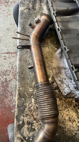 Tubo de escape para BMW con motores N47 y B47. Pieza de metal con acabado en cobre y sección flexible. - Compatible con BMW N47 B47. - Incluye soportes y conexiones. Encaja perfectamente Bmw Serie 3 serie 4