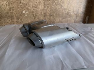 Escape original para Yamaha FZ6S del año 2007, modelo 2006. Pieza de metal con un diseño distintivo. - Doble salida. - Acabado metálico.