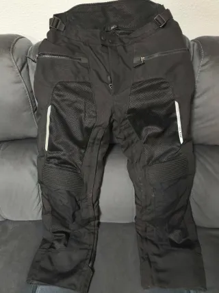 Pantalón de moto Revit en talla L. Cordura + forro. Sin roturas ni caídas. Protecciónes CE en rodilla. Cremallera en espalda para enganchar con chaqueta. - Color negro. - Paneles de malla para ventilación. - Detalles reflectantes.