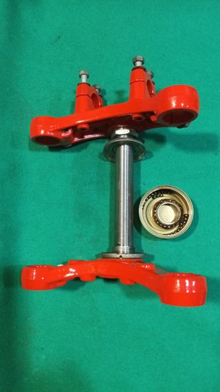 Conjunto de rodamientos para dirección de moto Montesa. Incluye las pistas y las bolas. Tengo otro juego con las bolas nuevas a estrenar por 5.- € mas. Para los modelos Enduro H6 75/125, Cota 74/123, Brio y algunos modelos mas. En perfecto estado. como se ven en las fotos - Dos pistas metálicas. - Dos jaulas de plástico amarillo con huecos para las bolas. - Bolas de rodamiento.