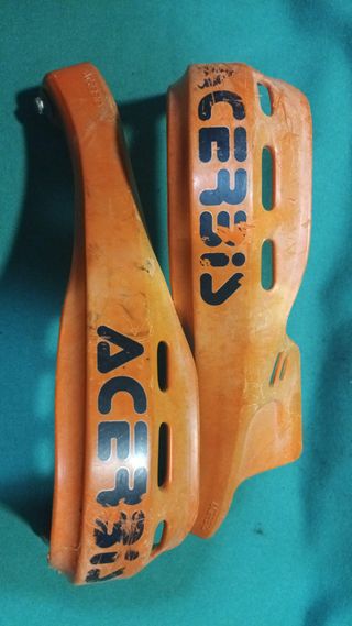 Pareja de guardamanos para moto o quad de la marca Acerbis originales, para KTM o cualquier otra moto de enduro, con todas sus sujeciones. Tal cual se ven en las fotos. - Color naranja. - Incluye los dos guardamanos.