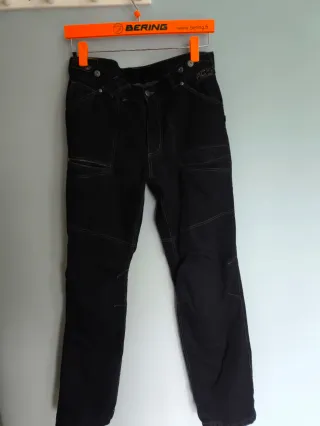 Pantalones de moto tipo vaquero con refuerzos de Kevlar. - Talla XL. - Color negro. - Costuras reforzadas.
