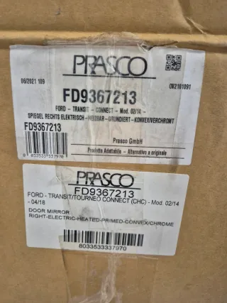 Retrovisor exterior eléctrico para Ford Transit Connect, lado derecho. - Carcasa de plástico negro. - Doble espejo. - Conector eléctrico.