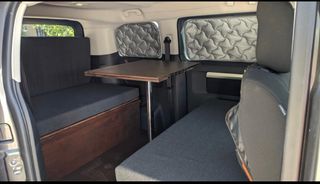 Kit de camperización para Traveller, Proace o Spacetourer (o similar). Se monta o desmonta en 10 minutos. Compuesto por: armarios en madera de caoba sobreelevados que actúan de somier o comedor, batería externa de gel de 200Ah casera (se carga con el alternador del vehículo o con cargador de 220V), nevera Vevor de 55 litros, panel solar plegable de 100W, 8 parasoles a medida de 6 capas cada uno que aislan del frío/calor, WC Potty sin usar y colchón de 1'40x1'90m en 3 fases. Posibilidad de adquirir solo los armarios. Negociamos el precio. Vienes con la furgoneta vacía y te la llevas camperizada. Te asesoro en todo momento.