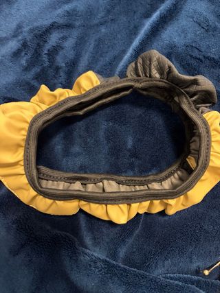 Funda decorativa para el volante de tu coche. Añade un toque de estilo y color. - Color amarillo y negro. - Diseño con volantes. - Material elástico.