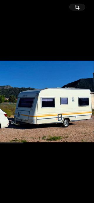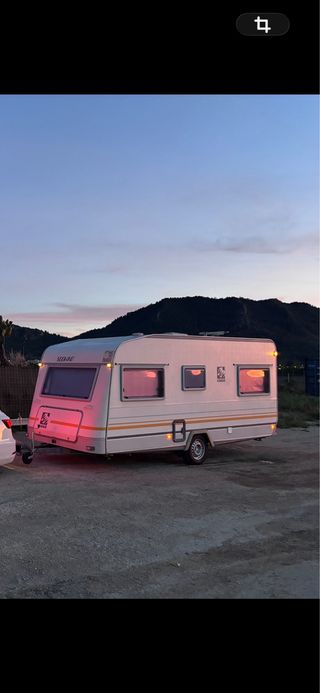 Caravana Knaus Sudwind 450 TK en buen estado, lista para tus escapadas +750 kg, tara 775 mma 900 kg, pasada itv en julio 2025 sin fallos, freno de inercia cambiado, ruedas de carga nuevas de julio y rueda de recambio nueva, la distribución interior es doble comedor, se convierte en cama de 1,40*200 a ambos lados, ademas hay una litera de 180*70. Uno de los comedores está como cama fija. La espuma y tela del otro comedor es nueva, la instalación eléctrica interior está revisada, sl igual que las luces exteriores, las bombas de agua de la cocina y de baño, son nuevas las 2 bombas, dispone de b Ver en fotos descripcion completa