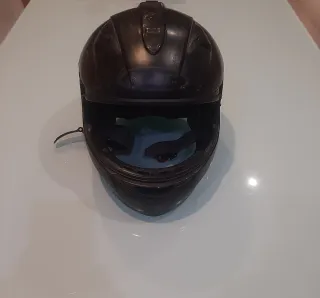 Casco de moto HJC en color negro. Diseño aerodinámico y protección. - Exterior robusto. - Interior cómodo. - Cierre de seguridad. Estado satisfactorio, muy usado.Con arañazos exteriores de apoyarlo en el suelo,ningúna caida. Valorado en 90e