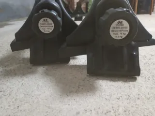 Baca de coche de color negro. - Barras de techo ajustables. - Sistema de fijación con perillas. - Es necesario abrir las puertas para montarlas/desmontarlas. - Han estado colocadas en un Hyundai accent del 2005.