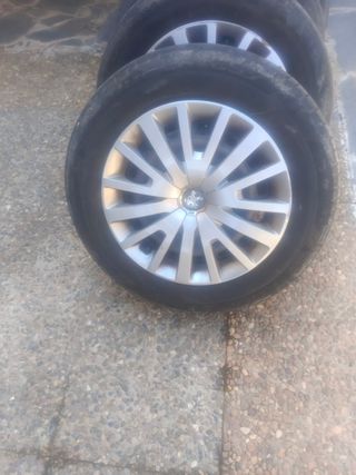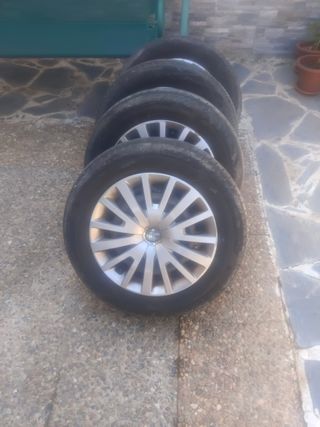 Juego de llantas para Skoda. - Medida: 205/55R16. - Diseño deportivo de 5 radios.una de ellas con un golpe como se aprecia en la foto,dos de los neumáticos están al 50% y los otros dos más desgastados
