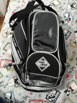 Bolsa de depósito para moto de la marca moto-detail. Ideal para llevar tus pertenencias de forma segura. - Diseño en color negro y plateado. - Compartimento transparente superior. - Logo de la marca visible.