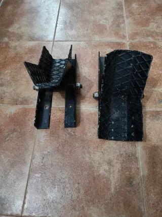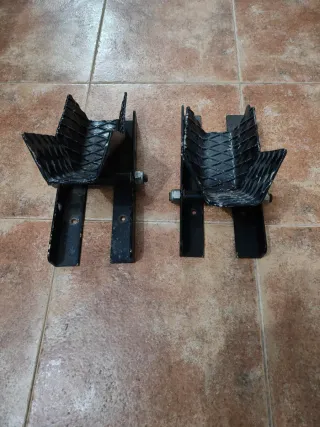 Cepos para rueda de moto en color negro. - Fabricado en metal resistente. - Diseño con rombos para mayor agarre. - Incluye tornillería para sujeción.
