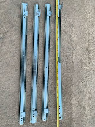 Conjunto de guías correderas para cajones, ideales para furgonetas o vehículos comerciales. Fabricadas en metal resistente. - Set de 4 guías correderas. - Material: Metal galvanizado. - Diseño robusto para uso intensivo.