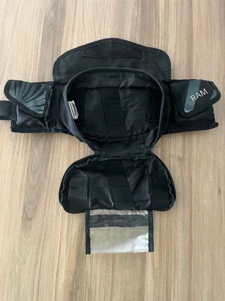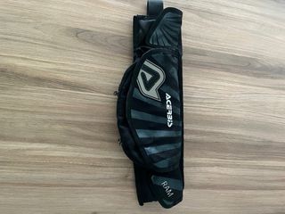 Riñonera negra de la marca Acerbis, modelo RAM, diseñada para moto. - Diseño con rayas grises y logo. - Cremalleras para cierre.