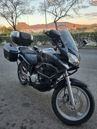 Moto Honda Varadero 125cc en color negro. Año 2011, 24.000km. Perfecta para rutas y viajes. Cuidada al detalle y con todos los extras. Mejor ver en persona. - Asiento de gel original Honda (Versión Francesa) - Maletas laterales Givi - Baúl trasero original Honda - Cúpula alta - Cubre carter - Defensas laterales - Caballete central - Paramanos - Puerto USB - C - Escape Arrow homologado - Kit de arrastre DID Reforzado " NO NEGOCIABLE"