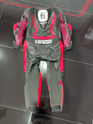 Mono de moto de cuero para niño, de la marca MIR Racing, en color negro y rojo. Está prácticamente nuevo. Talla 14 pero talla pequeño