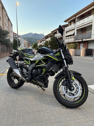 Moto Kawasaki Z 125. - Chasis tubular en color verde lima. - Detalles en verde lima en llantas y asiento. - Guardabarros delantero negro. - Escape de serie. - Batería y neumático trasero prácticamente nuevos. - La vendo porque no la uso. - Tiene una pequeña rallada en el lateral izquierdo. - No tiene ningún fallo y esta prácticamente nueva. - 29.500 quilómetros