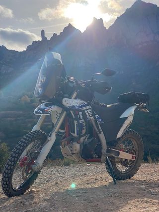 Vendo Husqvarna Te449. Año 2011. Se ha mantenido a tiempo y con componentes de calidad, nada pendiente. Se entrega con el escape akra de la foto y otro para ITV (ambos equipamiento original). Manuales de usuario y de despiece. Kit piezas para ITV No hay problema de recambios, motor BMW. Cubrecarter de aluminio 4mm, manguitos silicona,ventilación gases motor mejorada, arrastre nuevo completo, espejo plegable, luces led, batería de litio nueva, desconectador, neumaticos al 80%.... No leer KTM exc wr Yamaha trail enduro 500 ajp Rieju sherco 690 drz rally