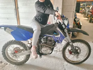 Moto AJP estilo enduro con transmisión manual. Ideal para caminos y terrenos difíciles. 125 CC a falta de poner en marcha está entera regalo otro motor que no se cómo estará pero está entero No tiene matrícula ni documentación La coji para motocross pero no llego al suelo por eso la quiero quitar - Diseño deportivo en azul y negro. - Ruedas todoterreno.