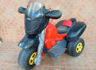 Moto de batería para niños con un diseño deportivo y llamativo. - Marca feber - Cargador - Color principal rojo y negro. - Tres ruedas para mayor estabilidad. - Parabrisas transparente. • Está en muy buen estado