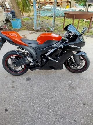 Moto deportiva Kawasaki ZX6R del año 2008. 600cc 125cv Diseño deportivo y llamativo. 30.367km •Con una gran puesta a punto de reglaje y tensorde distribución entre otros. •Batería de litio puesto el año pasado. •El piñón tiene un diente menos con lo cual tiene menos km aún, el plato y cadena son los originales de casa (entregaría el original también) •Latiguillo delantero metálico. •Gomas al 90% •ITV hasta 2027 •Topes anticaidas Acepto cambio por Yamaha V-Max 1200