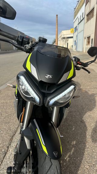 Triumph Street Triple RS matriculada en diciembre de 2021. Moto muy cuidada, siempre en garaje y con mantenimientos al día. Uso normal, sin circuito. Extras incluidos: • Escape Mivv • Puños calefactables • Portamatrículas corto Versión RS equipada con: • Suspensiones Öhlins • Frenos Brembo • Quickshifter↕️ • Modos de conducción • Iluminación full LED Datos: 📅 Año: 12/2021 🏍️ Kilómetros: 23.000 🔧 Última revisión: marzo 2025 (con factura) 📄 ITV en vigor hasta diciembre 2027 📍 Aldaia (Valencia) Tiene una marca estética de una caída en parado que no afecta a la conducción ni a la estructura (se aprecia en una de las fotos).