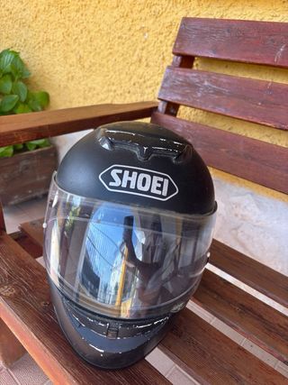 Casco de moto SHOEI en buen estado. Tiene algunos pequeños arañazos, pero está en general bien conservado. Extra de piel para el frio y doble visera antivaho. Precio 300eu - Marca: SHOEI - Color: Negro mate - Tipo: Integral