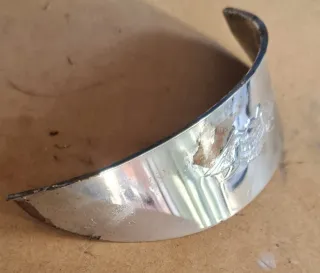 Visera cromada para faro de motocicleta, con águila y leyenda "live to ride". Marcas de óxido encima del águila