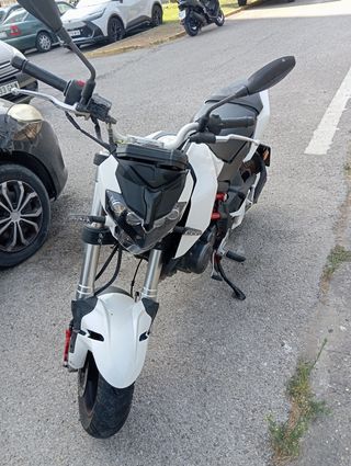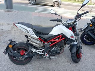 Moto Benelli 125 estilo naked, con una combinación de colores rojo y blanco. - Diseño deportivo. - Manillar elevado para una postura cómoda. - Doble escape. ITV recién pasada. 20.000k La venta es por qué no se usa tengo dos vehículos más .