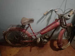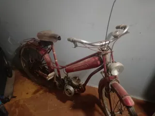 Moto antigua de color rojo, ideal para coleccionistas o proyectos de restauración. - Diseño clásico. - Marco robusto. Es un modelo francess Arranca y funciona abría que restaurar