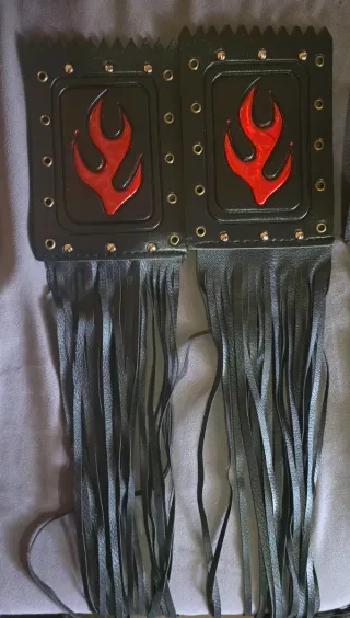 *** totalmente nuevas ! *** Fundas para manillar (sin maletas) moto estilo custom, con un diseño llamativo de llamas rojas sobre fondo negro. - Material: Cuero artificial. - Diseño: Llamas rojas y negro - Acabado: Remaches metálicos y flecos. El cuero es grueso y está bien terminado. Los flecos no tanto. Recordad recortar los flecos para evitar demasiados latigazos. *** también queréis la de las manetas estan en mi perfil ****.