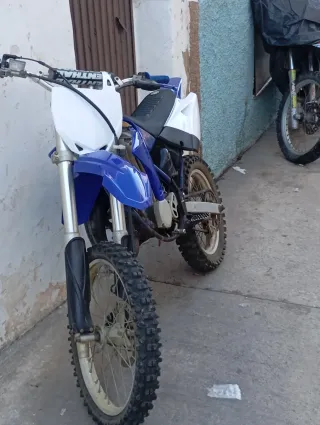 Moto Yamaha YZ 85. - Color azul y blanco. - Ruedas de cross.