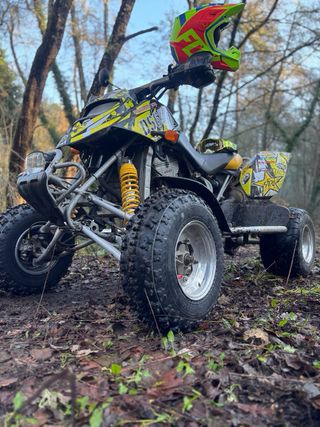Quad Bombardier DS 650 muy cuidado y muy bien conservado está para coger y andar itv pasada asta 2028 Guardabarros de aluminio Amortiguador de dirección nuevo Ruedas de adelante nuevas , mantenimientos hechos siempre se uso de carretera Doy un juego de ruedas de tacos para atrás las que tiene con de asfalto. - Diseño deportivo en negro y amarillo. - Neumáticos todoterreno. - Suspensión delantera y trasera. Acepto cambios por moto de enduro