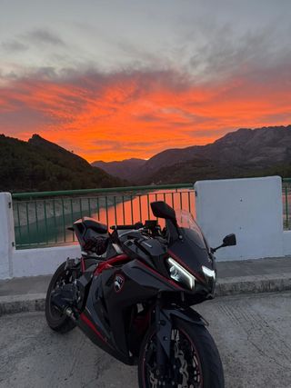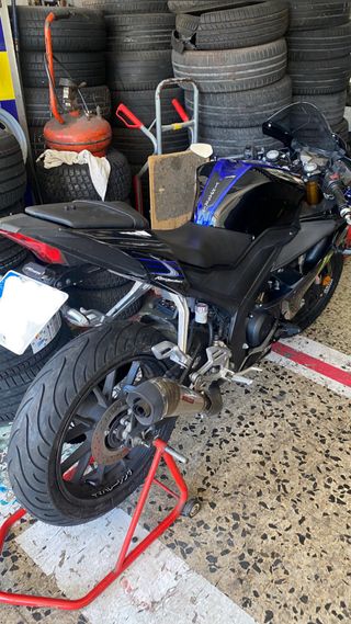Se vende por cambio de cilindrada, funciona bien, mantenimiento recién pasado, aceite, kit de arrastre cambiado hace nada. Ha dormido en garaje 2 caídas, de ahí los raspones de las chapas Cambiar las chapas laterales sale a 130 aprox. Quitando eso todo intacto No tiene garantía 15K kilómetros, el motor se cambio a los 11K. Para más fotos preguntar WhatsApp - Escape Akrapovic (No homologado) También doy el de serie. - Espejos de alerón, también doy los de casa para pasar itv en 2027 - Alerones laterales carbono - Portamatriculas corto deportivo Instalado GENTE SERIA PORFAVOR, más info preguntar. Escucho ofertas.