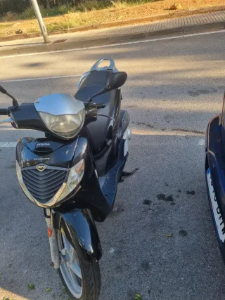 Moto de 49cc en color rojo y negro, con un diseño deportivo y moderno. Cuenta con un baúl trasero para almacenamiento adicional. - Diseño deportivo. - Baúl trasero incluido. - Ruedas de aleación. -ruedas nuevas -itv hasta 2027 43 mil km Va perfecto , o cambio por un 125 + diferencia de mi parte