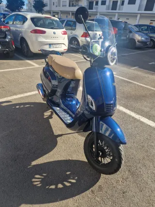 Moto Mitt Súper del año 2023 con 50cc de cilindrada. Un modelo moderno y ágil. - Color azul brillante. - Asiento cómodo en tono marrón. - Diseño retro. - Parabrisas transparente. Transferida. 4 tiempos Interesados comunicarse por WhatsApp al 603287224