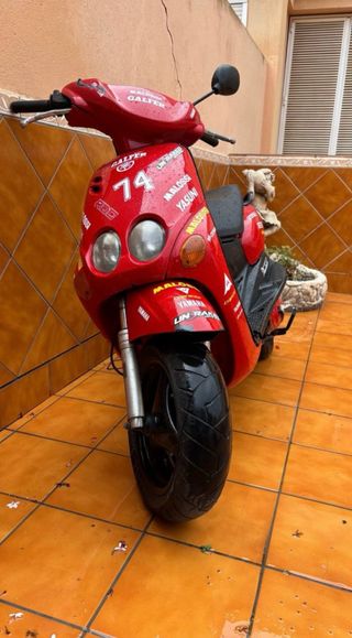 Se vende scooter Jog RR de Malossi con un diseño llamativo en colores rojo, amarillo y verde. Malossi 70 sport 17.5 dellorto Yasuni R Variador malossi Embrague malossi Correa malossi Cigüeñal italkit Relaciones malossi Doy todo de casa y tiene itv asta 2027 Cambio por rieju rr en mismas condiciones